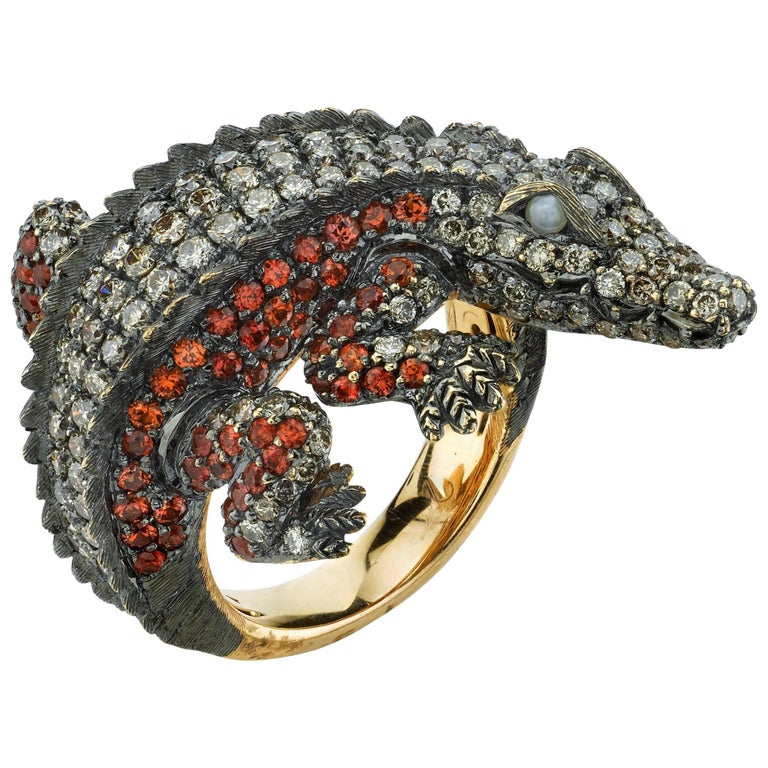 Orange Sapphire Cat Eye Diamond Gold Alligator Ring For Sale At 1stdibs